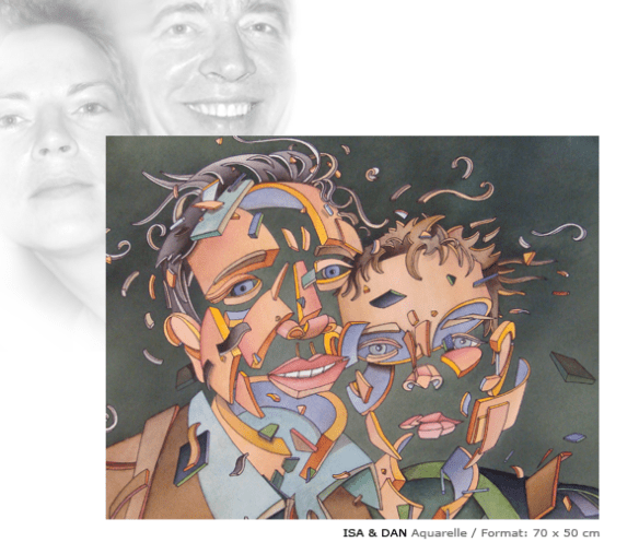 Avec ma technique de transformation en volumes éclatés, je commence à interpréter des portraits sans instruments.